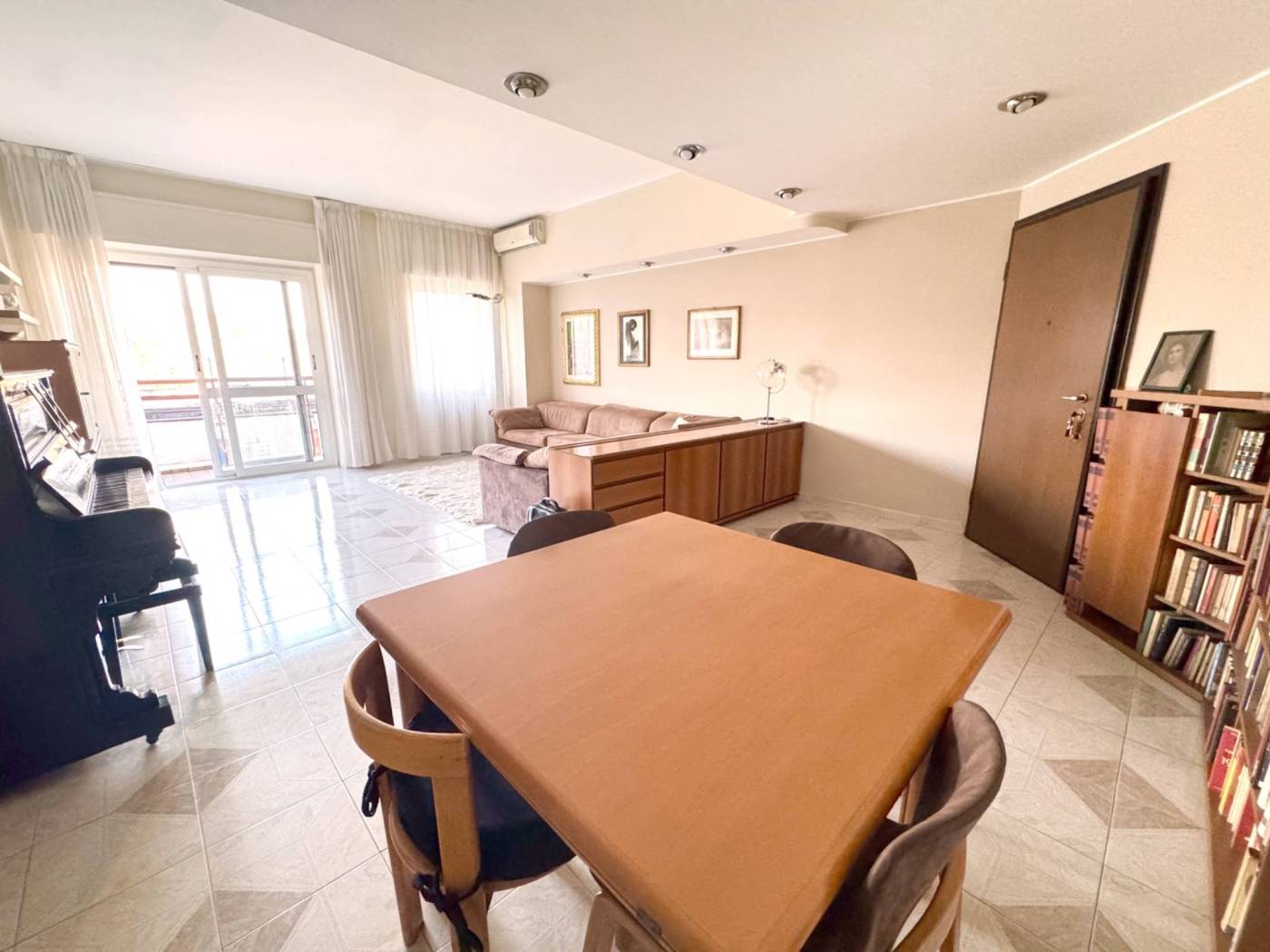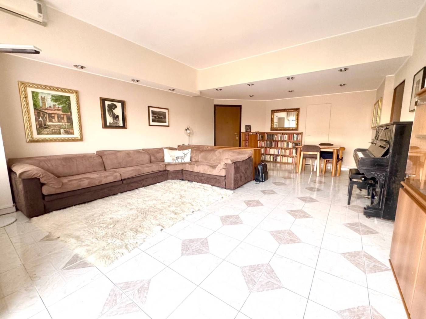 L'immobile è un tre locali di circa 130 mq commerciali (110 mq di abitazione, 25 mq di balconi, 7 mq di cantina, 13 mq di box).